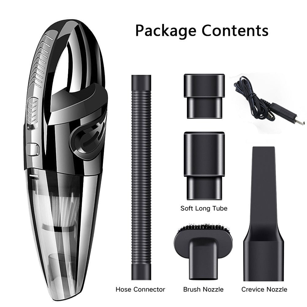 2.VERSATILE, SUPPORT ALL-ROUND DRY & WET CLEANING--This hand vacuum cleaner is versatile with more than one attachments; extended hose widens cleaning scope and makes cleaning easier. Crevice tool allows you to pick up debris at narrow corner or space; dusting brush allows you to absorb hair or residue from the delicate surface and interior decoration. It helps you to easily clean dust, debris, bread crumbs, pet hair, dog hair, cat hair, and liquids (no more than 100 ml).