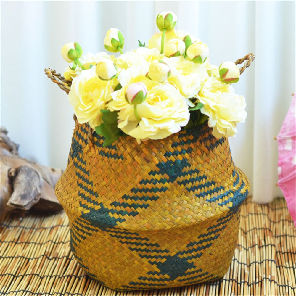 Seagrass Wicker Basket Flower Pot Folding Basket Dirty Basket Storage Decoration
